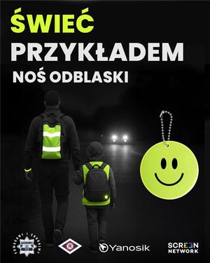 o potrzebie korzystania z elementów odblaskowych oraz bezpiecznym poruszaniu się po drodze.