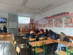 Podkomisarz Agnieszka Bubień i młodsza aspirant Adrianna Nadarzewska omówiły różne formy przemocy rówieśniczej i zwróciły uwagę na to, że agresja może powodować długotrwałe skutki emocjonalne. Policjantki podkreśliły, jak ważne jest reagowanie na pierwsze sygnały niepokojących zachowań zarówno przez uczniów, jak i dorosłych. Wskazały także, że obojętność wzmacnia poczucie bezkarności sprawców. Funkcjonariuszki przypomniały, że szkoła powinna być miejsce wolnym od zagrożeń, w którym każdy uczeń ma prawo czuć się szanowany i chroniony.