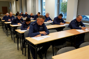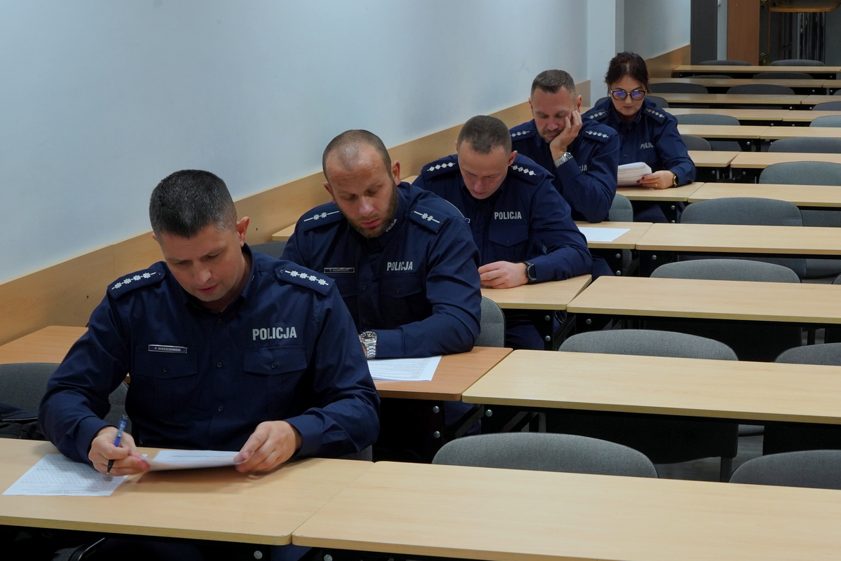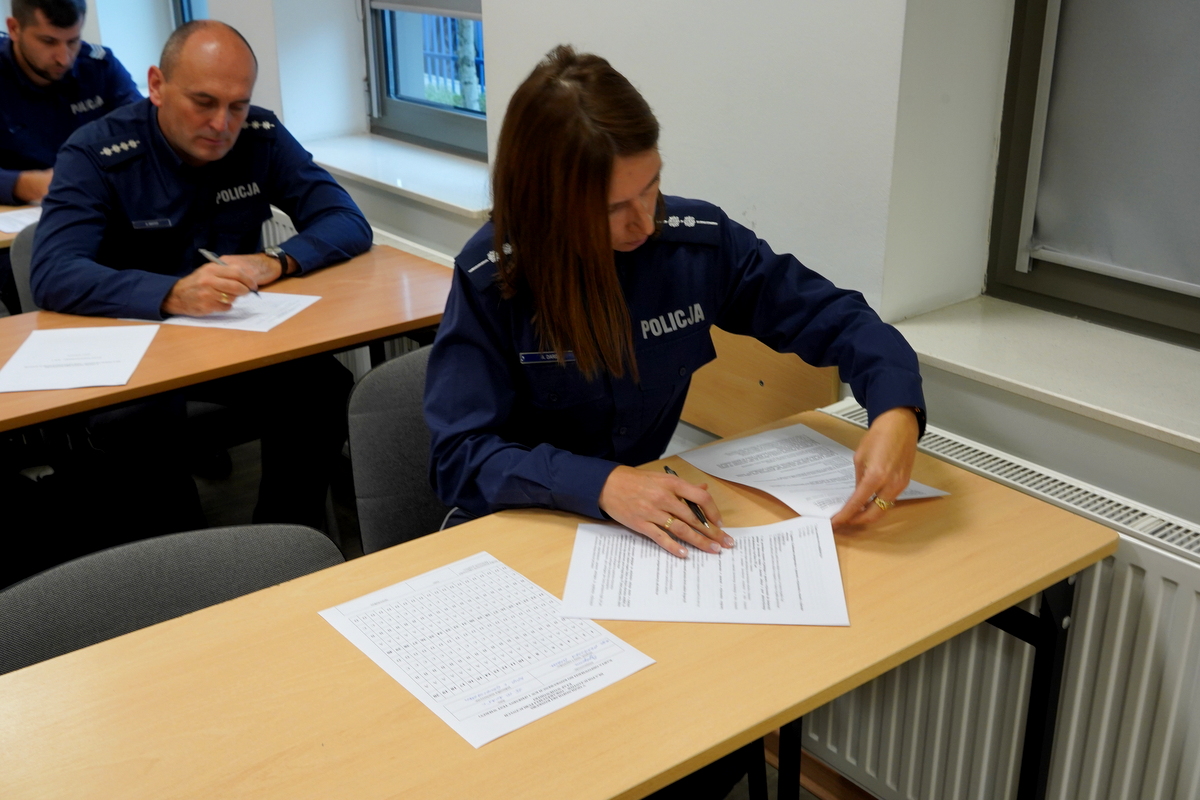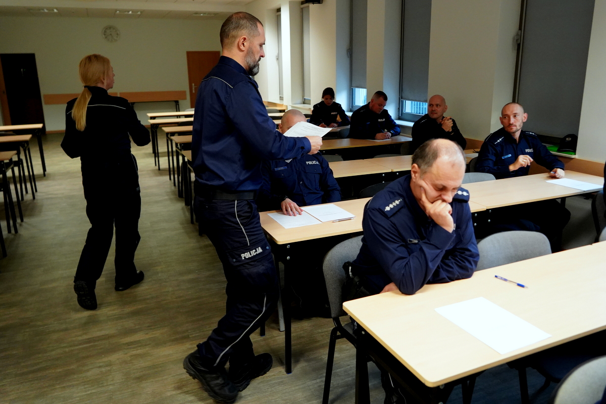 W salach wykładowych na terenie Komendy Wojewódzkiej Policji w Bydgoszczy policjanci-oskarżyciele publiczni zostali poddani ocenie w dwóch konkurencjach: