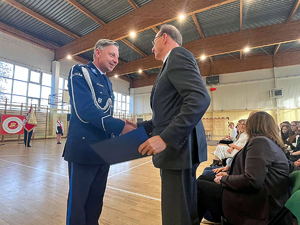 Komendę Miejską Policji w Toruniu reprezentowali: I Zastępca Komendanta Miejskiego Policji w Toruniu kom. Tomasz Markowski, Naczelnik Wydziału Prewencji mł. insp. Maciej Szmelter oraz specjalista Wydziału Prewencji kom. Małgorzata Olewińska. Podczas uroczystości Szef toruńskich policjantów przekazał dyrekcji, nauczycielom i uczniom gratulacje oraz słowa uznania za konsekwentne działania w zakresie rozwoju edukacji mundurowej i kształtowania postaw obywatelskich wśród młodzieży.