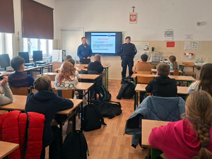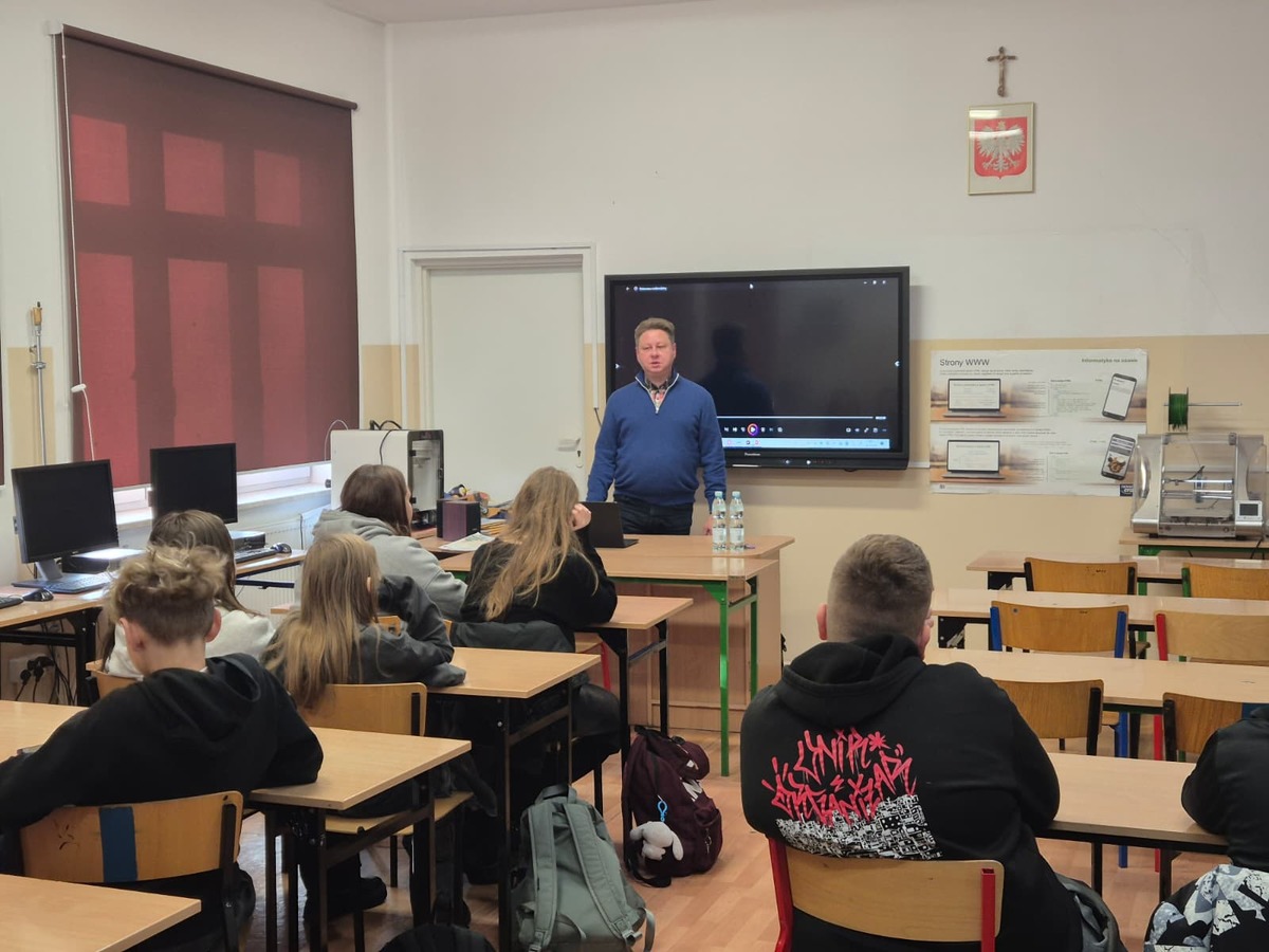 Przedstawiciele wydziału prewencji toruńskiej komendy odwiedzili szkołę, aby przeprowadzić pogadankę na temat współczesnych cyberzagrożen. Uczniowie mieli okazję nie tylko poznać praktyczne wskazówki dotyczące bezpiecznego korzystania z sieci, lecz także zadawać pytania dotyczące sytuacji, z którymi sami spotkali się w świecie wirtualnym.
