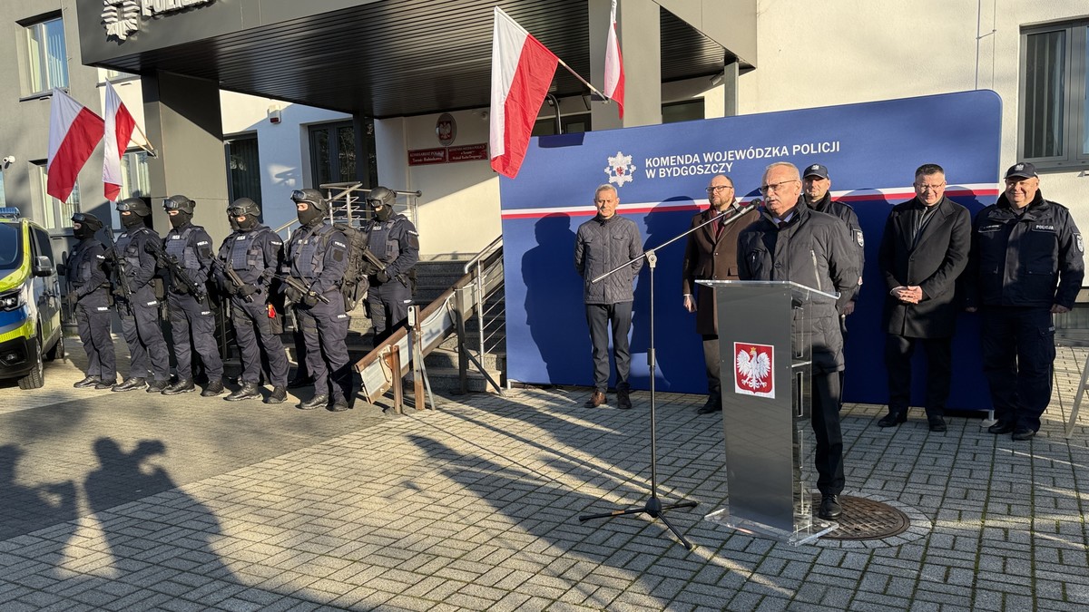 Dzisiaj (23.12.2025 r.) w Toruniu odbyła się zbiórka, podczas której przekazane zostały nowe, policyjne radiowozy. Komendant Wojewódzki Policji w Bydgoszcz inspektor Jakub Groczyński, z udziałem samorządowców, na czele z Prezydentem Torunia Panem Pawłem Gulewskim, uroczyście przekazali kluczyki policjantom. Auta zakupiono dzięki dofinansowaniu z budżetu Miasta Toruń. Do policjantów trafił także sprzęt zakup, którego sfinansowano dzięki środkom z Urzędu Marszałkowskiego Województwa Kujawsko-Pomorskiego w Toruniu.