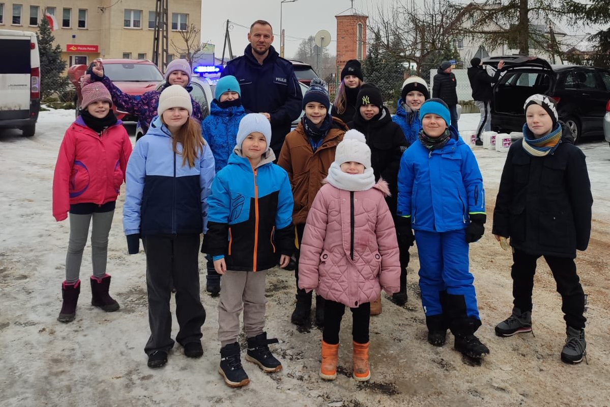 Wczoraj (6.02.2026) w trakcie półkolonii zorganizowanych w Szkole Podstawowej w Osieku nad Wisłą dzieci miały okazję spotkać się z asp. Patrykiem Rzepeckim - policjantem z Zespołu do spraw profilaktyki i wykroczeń Komisariatu Policji w Dobrzejewicach. Funkcjonariusz w przystępny i ciekawy sposób omówił najważniejsze zasady bezpiecznego spędzania ferii zimowych oraz bezpiecznej drogi do szkoły.