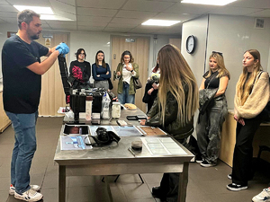 Uczestniczki miały możliwość zobaczyć, jak wygląda stanowisko pracy oficera dyżurnego, skąd koordynuje się bieżące działania funkcjonariuszy. W spotkaniu brał udział także policyjny technik, który zaprezentował zestawy do ujawniania i zabezpieczania śladów linii papilarnych i narzędzia do pobierania mikrośladów. Funkcjonariusz opowiedział również o metodach pracy na miejscu zdarzenia. Każdy mógł z bliska przyjrzeć się wyposażeniu, zadawać pytania oraz dowiedzieć się jakie predyspozycje i umiejętności są niezbędne, aby odnaleźć się w tej specjalizacji.