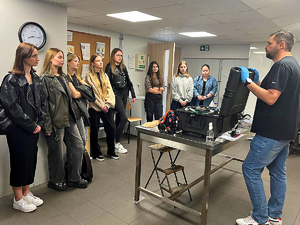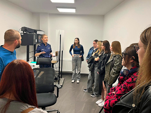 Studentki Uniwersytetu WSB Merito w Toruniu odwiedziły komisariat na toruńskim Rubinkowie, gdzie miały okazję zapoznać się z codziennym funkcjonowaniem jednostki. Policjantka z wydziału prewencji oprowadziła gości po obiekcie, prezentując m.in. stanowisko kierowania i pokój technika kryminalistyki. Spotkanie pozwoliło młodym osobom poznać kulisy pracy mundurowych.