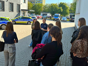 Dziś (27.05.2025), komisariat na toruńskim Rubinkowie gościł grupę studentek bezpieczeństwa wewnętrznego Uniwersytetu WSB Merito w Toruniu. Celem spotkania było przybliżenie młodym osobom realiów pracy w Policji oraz zachęcenie ich do wyboru tej ścieżki zawodowej w przyszłości. Po obiekcie studentki oprowadzała starszy sierżant Sandra Frątczak z wydziału prewencji Komisariatu Policji Toruń-Rubinkowo.