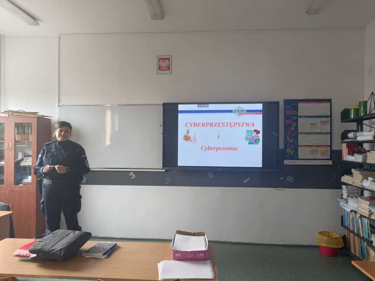 Ważnym aspektem zajęć była cyberprzemoc. Policjantki zwróciły uwagę na niebezpieczeństwa związane z korzystaniem z mediów społecznościowych i komunikatorów. Uczniowie dowiedzieli się, jakie działania są karalne i jakie skutki może nieść nawet pozornie „żartobliwa” aktywność w sieci.