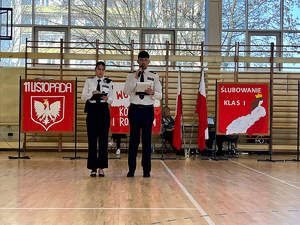 Komendę Miejską Policji w Toruniu reprezentowali: I Zastępca Komendanta Miejskiego Policji w Toruniu kom. Tomasz Markowski, Naczelnik Wydziału Prewencji mł. insp. Maciej Szmelter oraz specjalista Wydziału Prewencji kom. Małgorzata Olewińska. Podczas uroczystości Szef toruńskich policjantów przekazał dyrekcji, nauczycielom i uczniom gratulacje oraz słowa uznania za konsekwentne działania w zakresie rozwoju edukacji mundurowej i kształtowania postaw obywatelskich wśród młodzieży.
