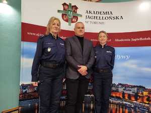 W piątek i sobotę (21-22.11.2025), policjantki z Wydziału Prewencji Komendy Miejskiej Policji w Toruniu oraz funkcjonariusz Centralnego Biura Zwalczania Cyberprzestępczości wzięli udział w konferencji naukowej pn. „Jak zerwać cyfrową smycz” - VI Ogólnopolski Kongres Pedagogiki Chrześcijańskiej. Dwudniowe spotkanie w siedzibie Akademii Jagiellońskiej w Toruniu zgromadziło ekspertów i praktyków zajmujących się bezpieczeństwem w sieci i stworzyło przestrzeń do wymiany doświadczeń.