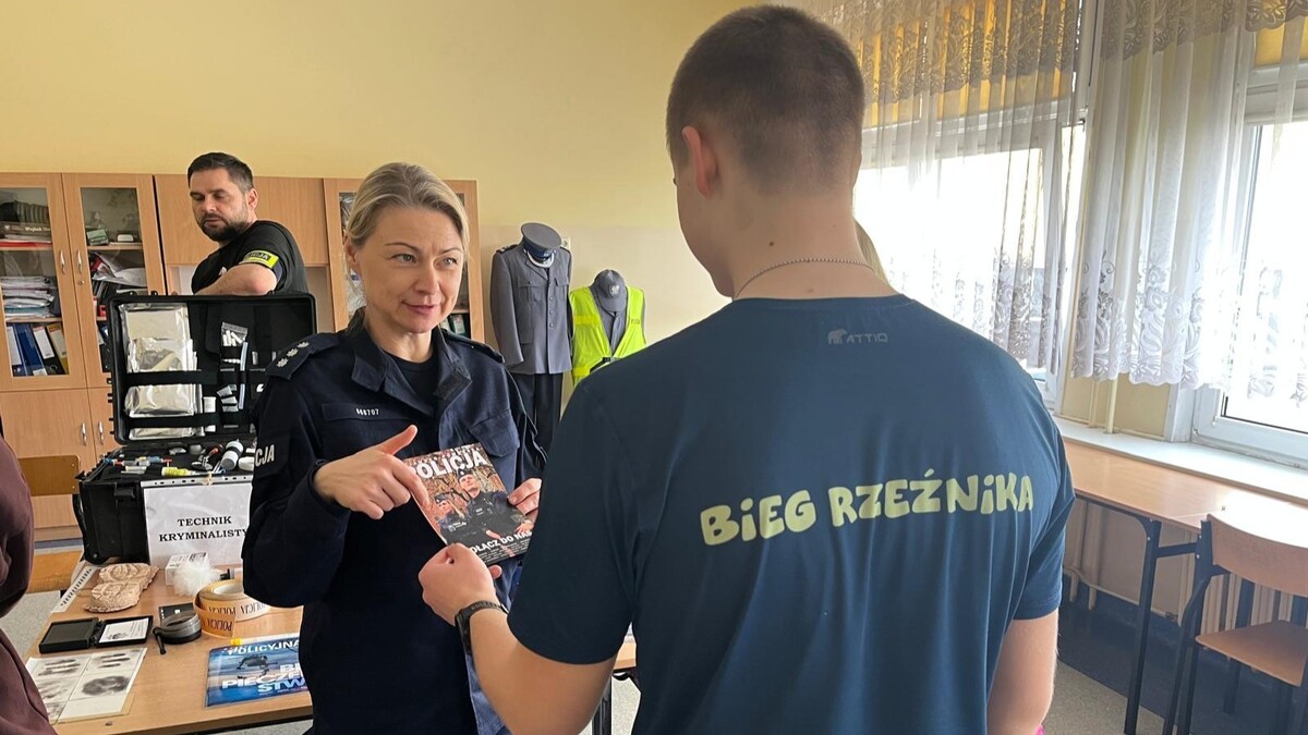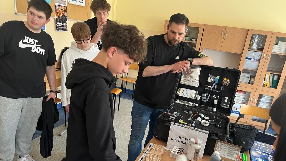 Podczas wydarzenia uczniowie mogli porozmawiać z mundurowymi o ich codziennej służbie. Dużym zainteresowaniem cieszyło się stanowisko technika kryminalistyki, przy którym zaprezentowano tzw. walizkę kryminalistyczną. Młodzież mogła zobaczyć, jak zabezpiecza się ślady, a także dowiedzieć się, w jaki sposób sporządza się dokumentację na miejscu zdarzenia.