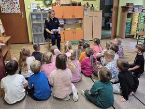 Podczas wizyt aspirant Monika Stolarska opowiadała dzieciom o zasadach bezpiecznego poruszania się po drogach. Wyjaśniła, dlaczego tak ważne jest, aby zawsze przechodzić przez jezdnię w wyznaczonych miejscach, jak zachowywać się przy przejściach dla pieszych oraz jak unikać sytuacji zagrażających bezpieczeństwu.