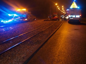 Dzisiaj (16.11) około północy na ul. Traugutta doszło do tragicznego w skutkach wypadku drogowego. Ze wstępnych ustaleń policjantów wynika, że kierowca osobowej mazdy stracił panowanie nad autem i uderzył w słup trakcji tramwajowej. Kierowca poniósł śmierć na miejscu, do szpitala trafiło dwóch pasażerów samochodu. Okoliczności i przyczyny tego zdarzenia będą wyjaśniać funkcjonariusze z toruńskiej komendy pod nadzorem prokuratury.